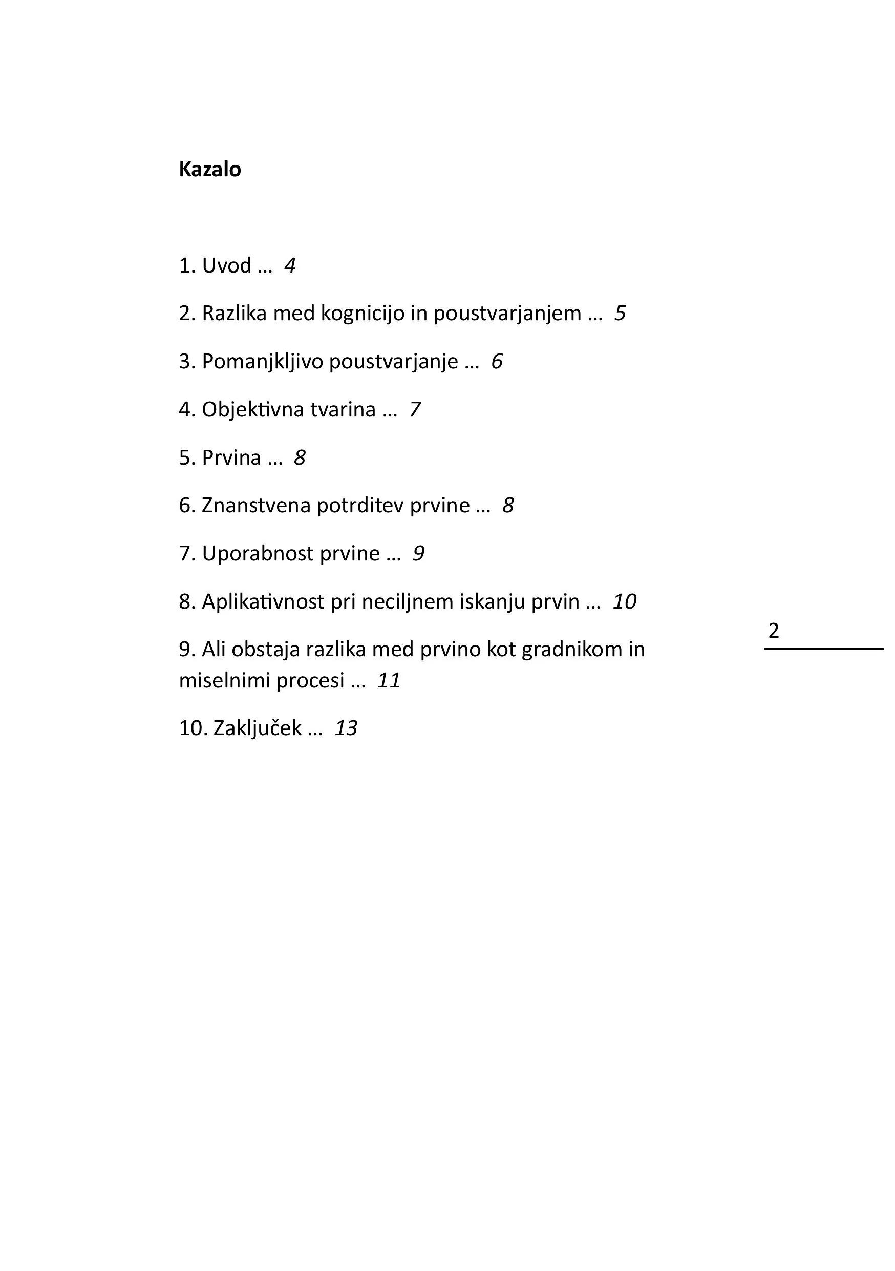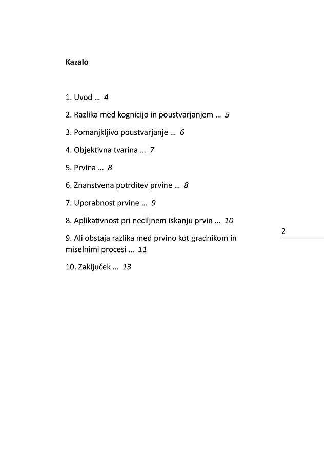 Avtor želi podati definicijo prvine in slednjo znanstveno utemeljiti.