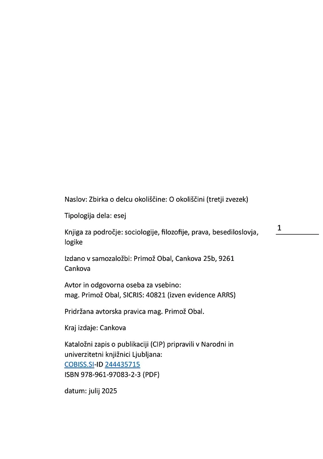Zbirka podaja vsaj delček razumevanja, kaj tvori okoliščino, kot del