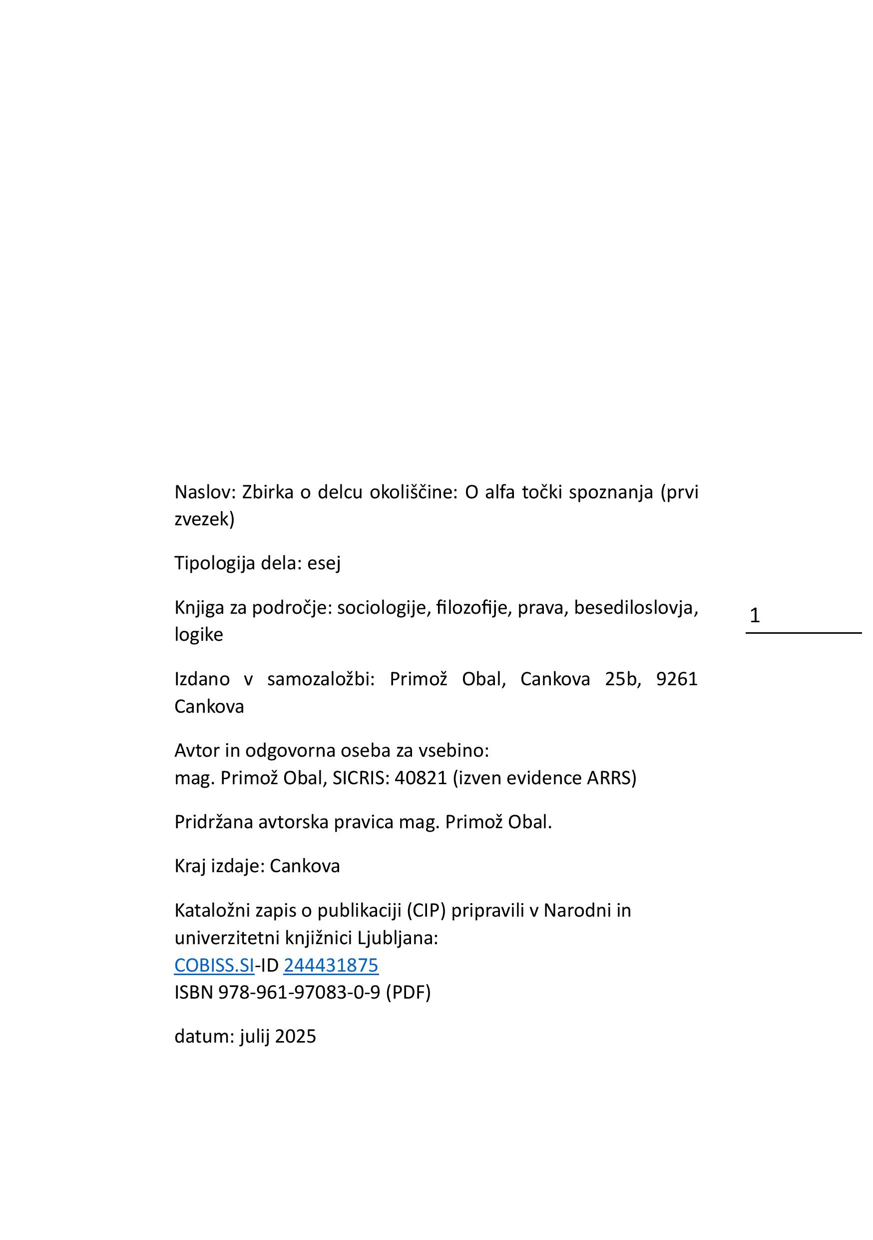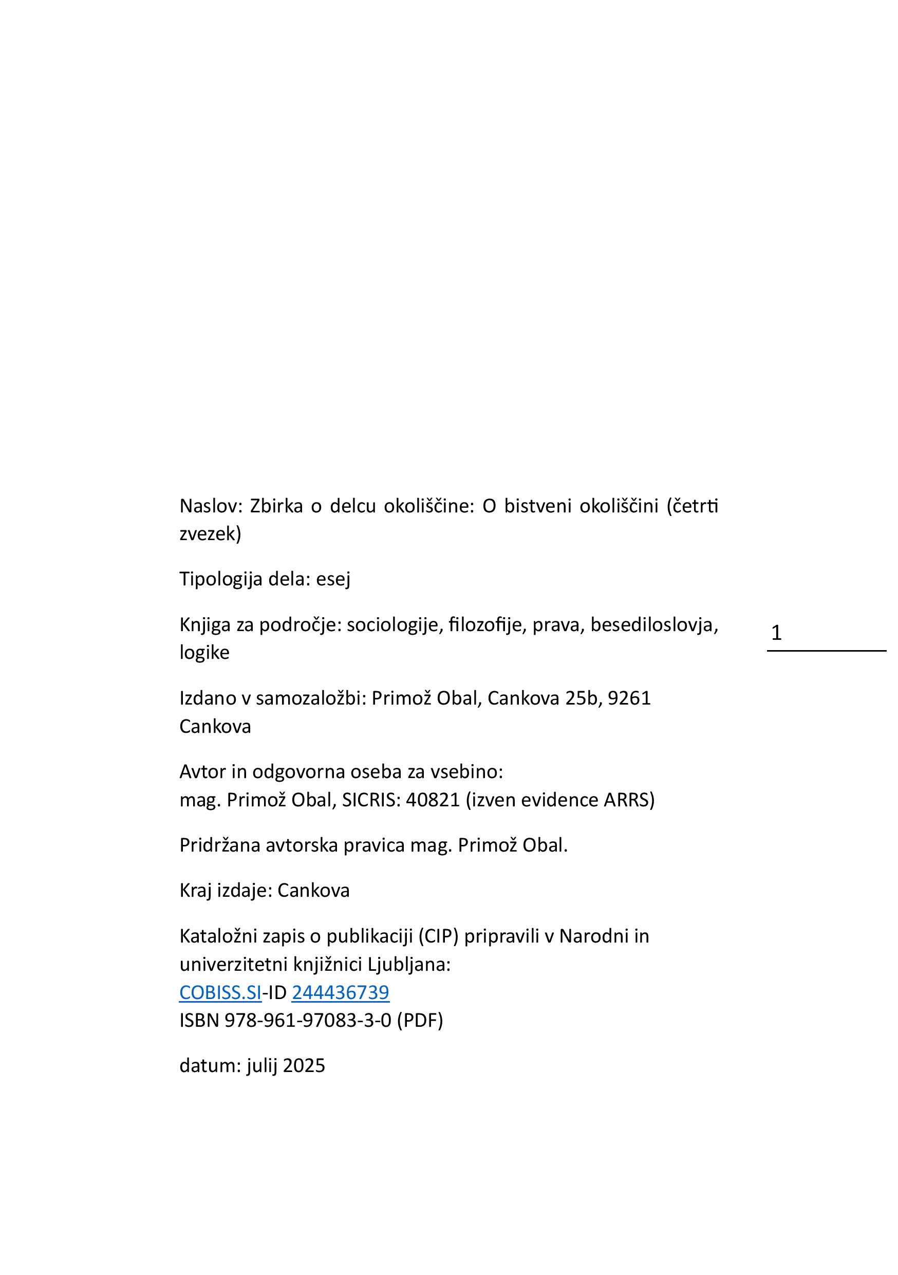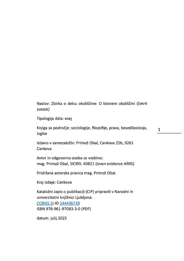 Razprave so del zbirke o razumevanju okoliščine. Tako poskušamo najti njen najmanjši delec. Kje ga najti in kaj nam slednje ponuja, je tematika s katero se ukvarjamo v zvezkih o bistveni okoliščini, okoliščini, prvini in alfa točki spoznanja. Najbolj prodorno je razpravljanje o neznanem, vendar obstoječem dokazu in kako ga najti. Konceptualno stoji pred nami ovira, saj ne vemo če sploh obstaja. Ali lahko v tem primeru govorimo o novem učenju ? Prvina kot gradnik okoliščin ponuja sestavni del za številne okoliščine. Po katerih pravilih funkcionira, je namen drugega zvezka zbirke. Pri okoliščini, kar je vsem jasno dejstvo, odpiramo vprašanja njenih napak. V tretjem zvezku se dotikamo pojavov restitucije in rekonstrukcije okoliščine. Ali je možno hkrati razpravljati o bistveni in neznani okoliščini. Metoda opazovalne zanke je predstavljena v četrtem zvezku.
