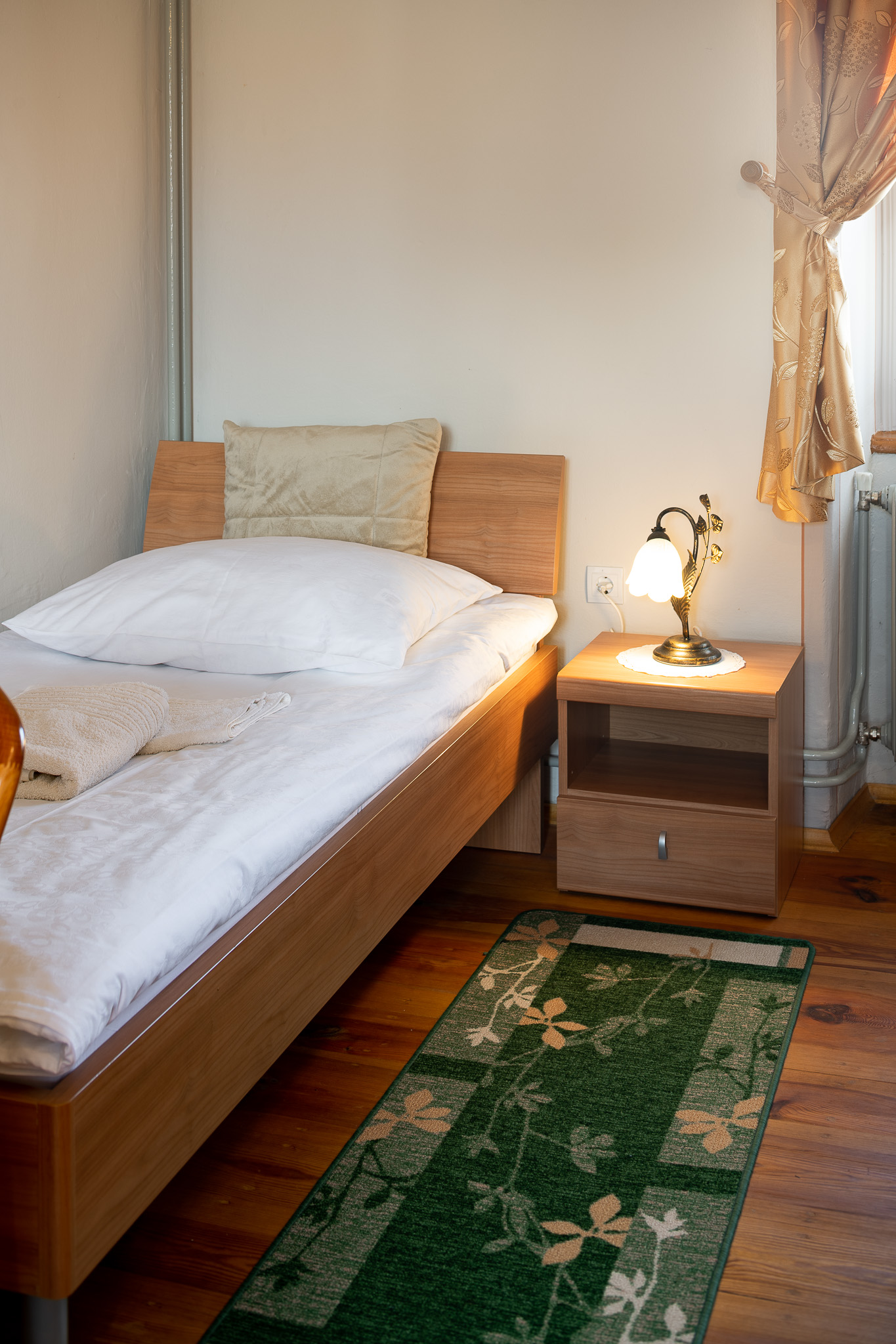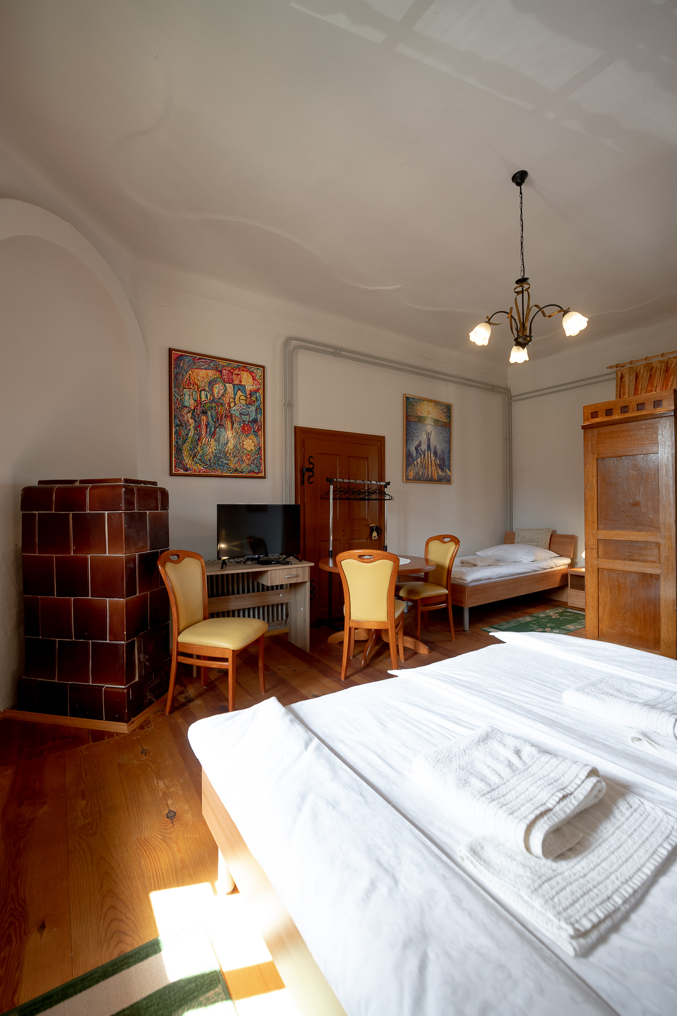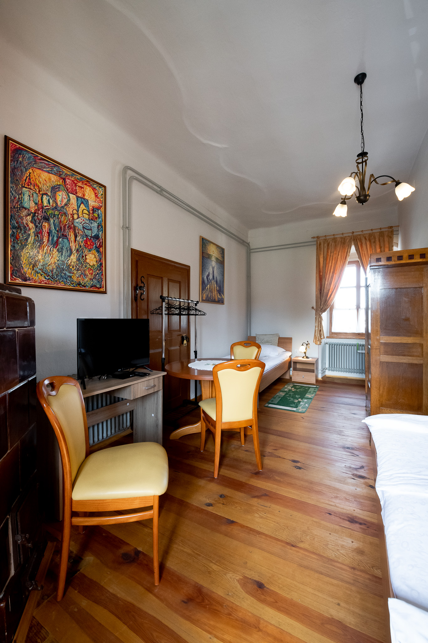Soba v desnem krilu nekdanjega lovskega dvorca ponuja razgled na